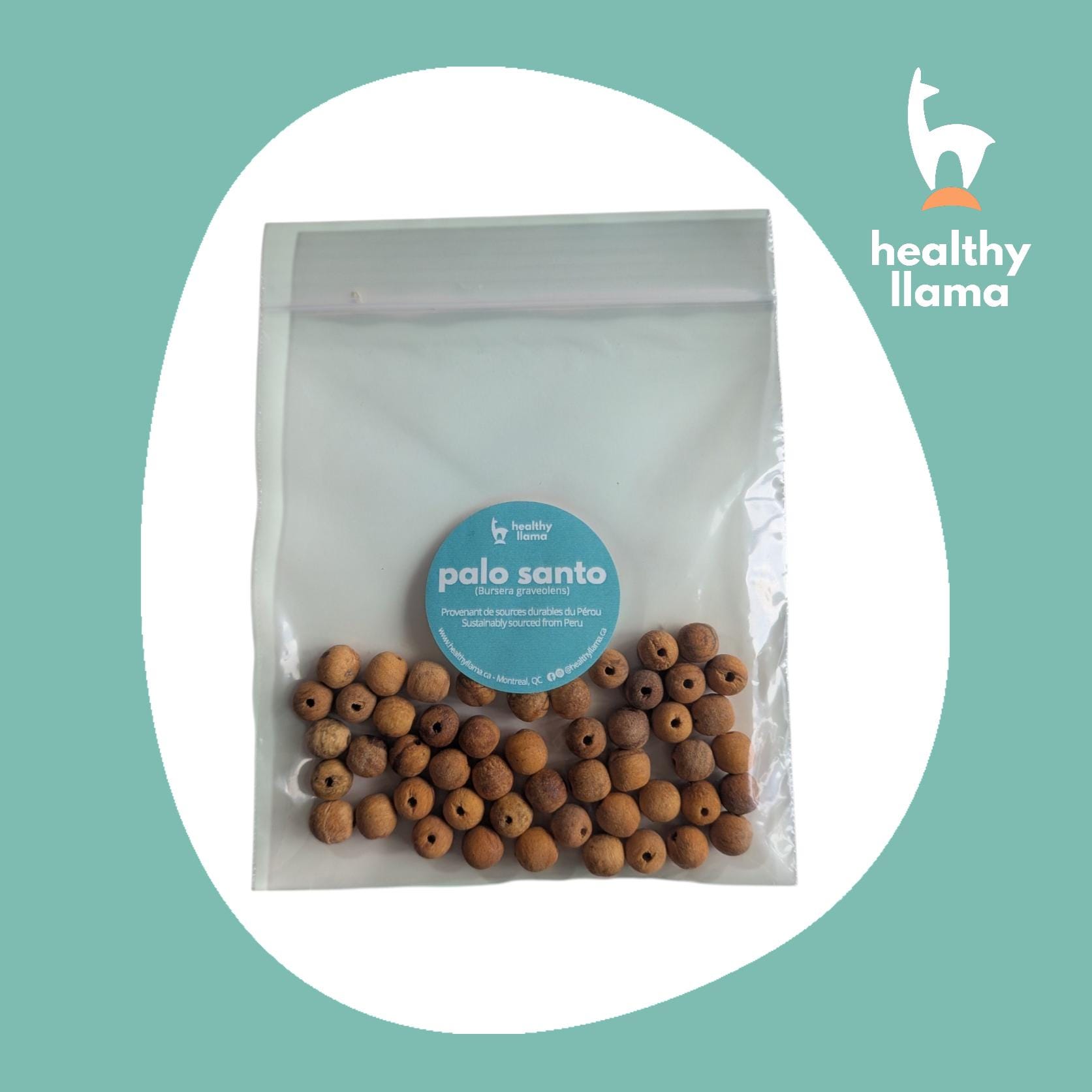 Imprégnez vos créations de l'essence apaisante du "Palo Santo". Il s'agit des mêmes perles issues d'un approvisionnement éthique que celles utilisées dans nos bracelets "healthy llama" emblématiques - désormais disponibles pour vos projets de malas, colliers et bijoux personnalisés.